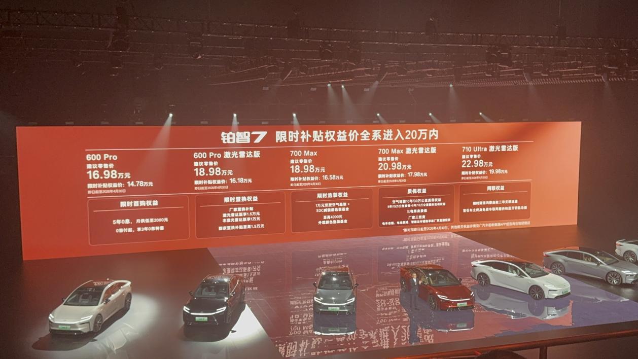 其中,铂智7 600Pro版限时补贴权益价14.78万元,作为入门版本,配置并未“缩水”,标配内置MoLA架构的鸿蒙座舱5,具备类人化智能交互功能,搭载带智能泊车的L2级智能辅助驾驶系统、华为智擎、尊界同款星闪钥匙、纯天然实木内饰、座椅通风加热、20寸轮毂等15余项实用配置。