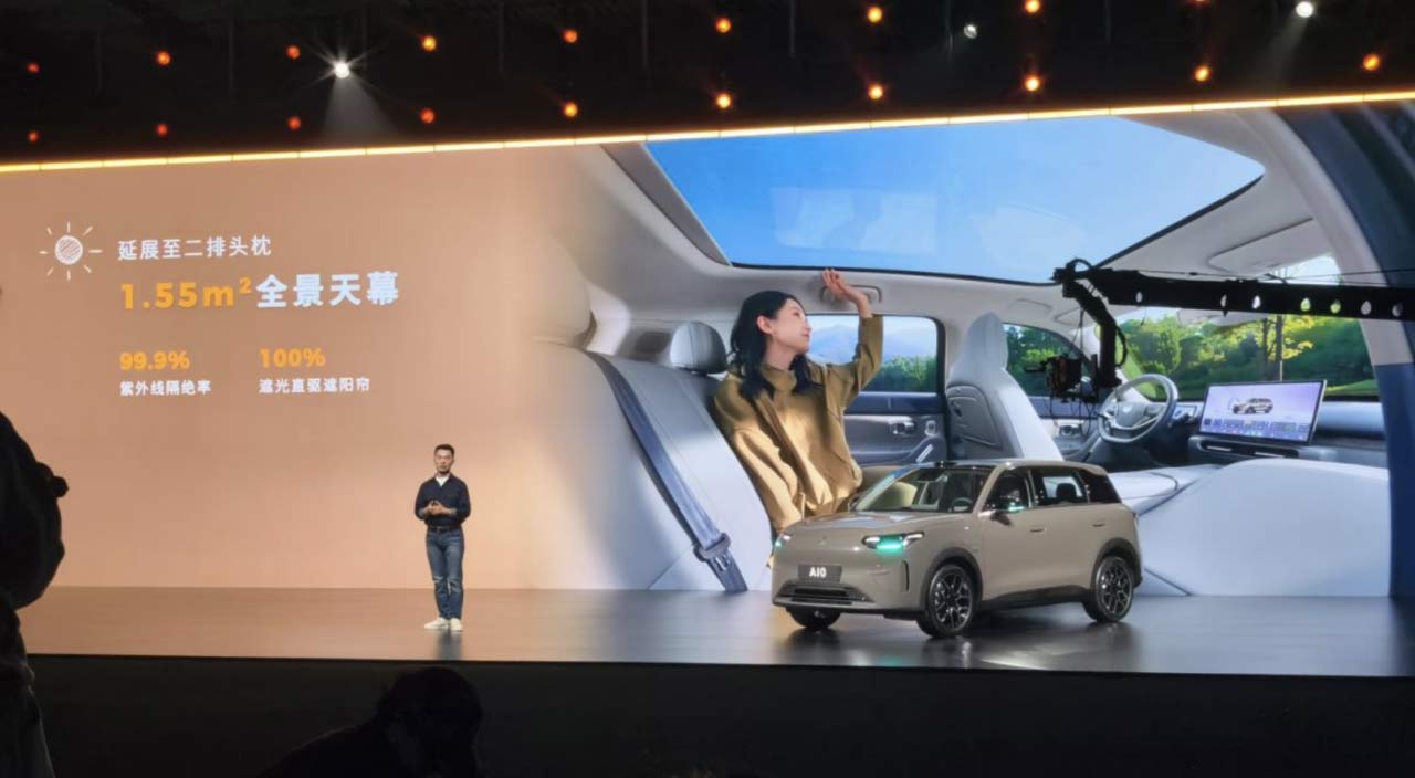 同时,1.55㎡超大全景天幕拥有紫外线隔绝并标配100%遮光电动遮阳帘,座舱内部软包覆盖面积达2.63㎡。