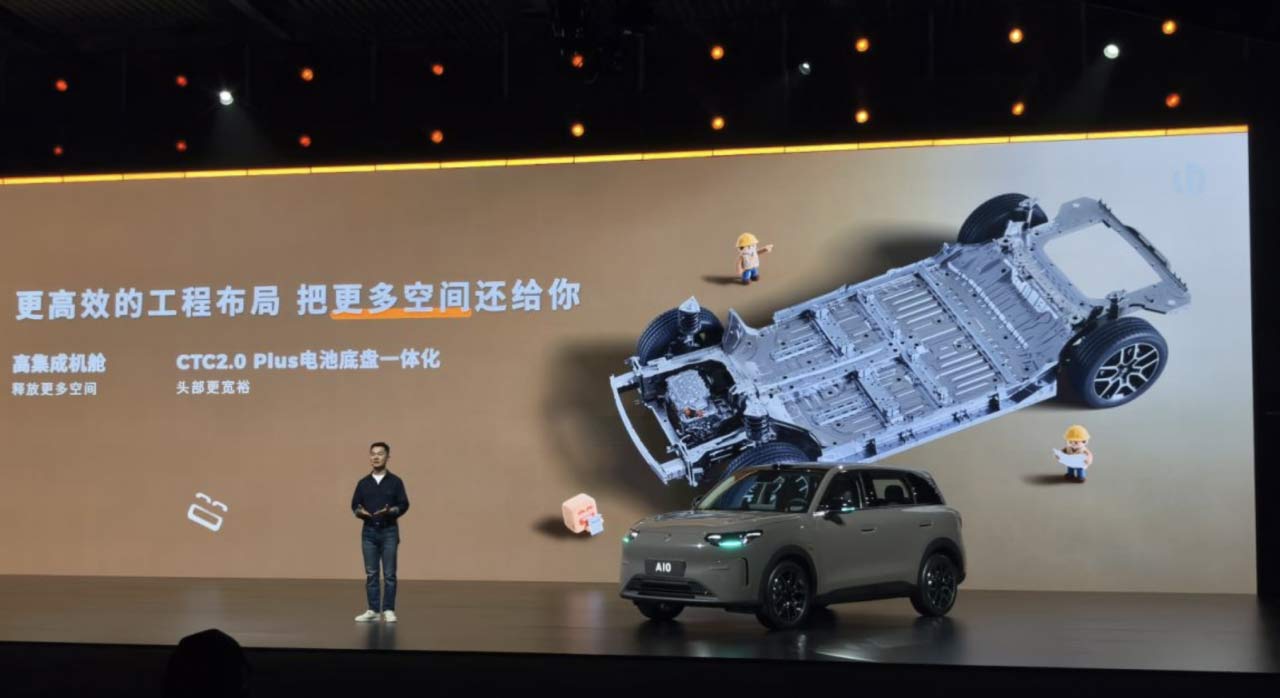 通过CTC2.0 Plus电池底盘一体化、高集成机舱、内外门槛错位设计,零跑A10实现最大88.1%得房率,带来A+级空间体验。