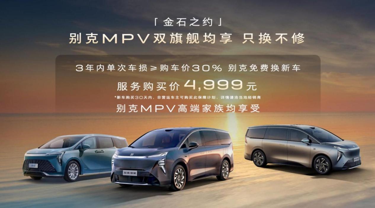 至境世家纯电版享受「金石之约」用户权益,购买别克MPV双旗舰的用户,新车购买30天内,非营运车主可享特惠4999元购买权益。3年内单次车损≥购车价30%,别克免费换新车。该服务承诺,既是别克对自身产品品质的绝对自信,更是给用户最踏实的兜底,让用户用车无忧、驰骋安心。
