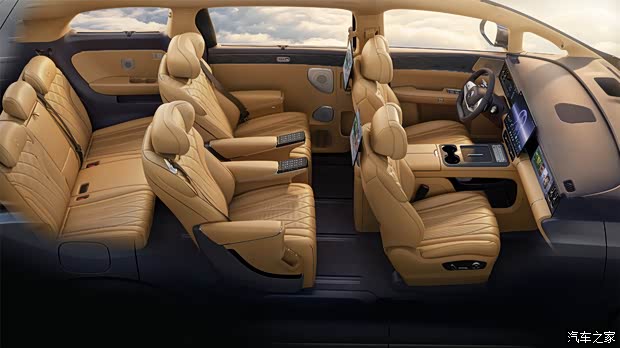 这款车在车内相较现款也有多处升级。中控台整体布局有所调整,横平竖直更加规整,空调出风口造型、副驾屏、全新的电子怀挡、物理按键等变化,使得中控布局清晰利落,整体内饰视觉效果更加清爽简洁。同时,新款腾势D9二排保留靠背屏幕的同时、增加了吸顶屏,座椅也进行了更多升级。