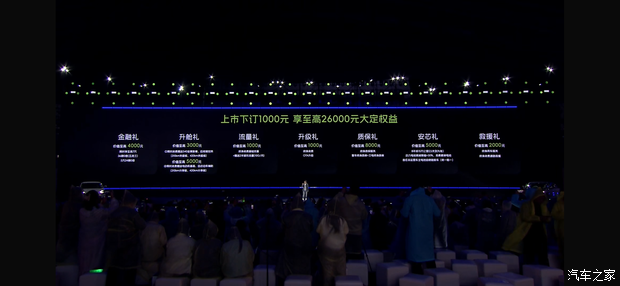 下订1000元,享至高26000元大定权益,包括金融礼、升舱礼、流量礼、升级礼、质保礼、安芯礼和救援礼。另外310km 分享版可选装17英寸双色轮圈、420km 分享版提供科技升级包和智享升级包。