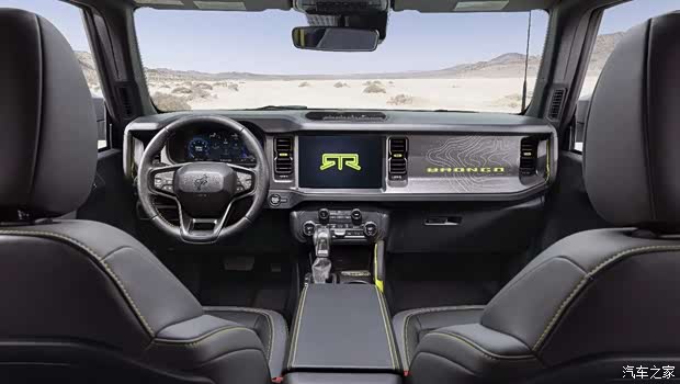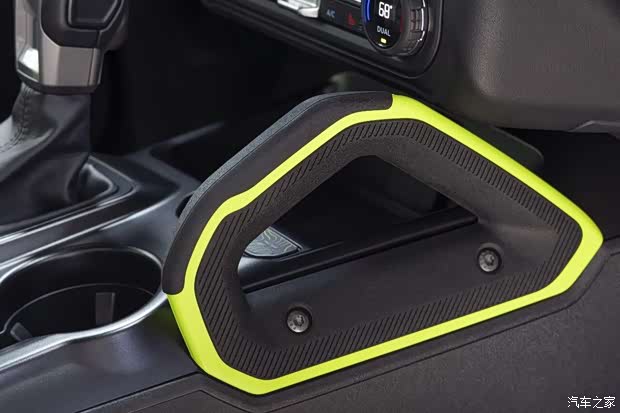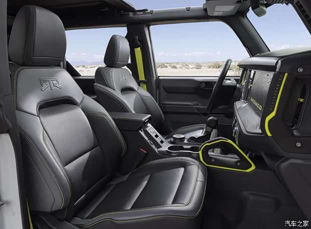 福特烈马RTR内饰增加了烈马RTR外观上那些鲜明的细节元素,设计师将RTR标志性荧光黄绿色调巧妙地延伸到了车内,安全带、缝线、拉手以及仪表板的装饰细节中。