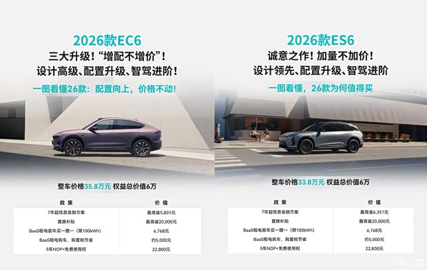 | 2026款蔚来ES6/EC6 官方指导售价 |