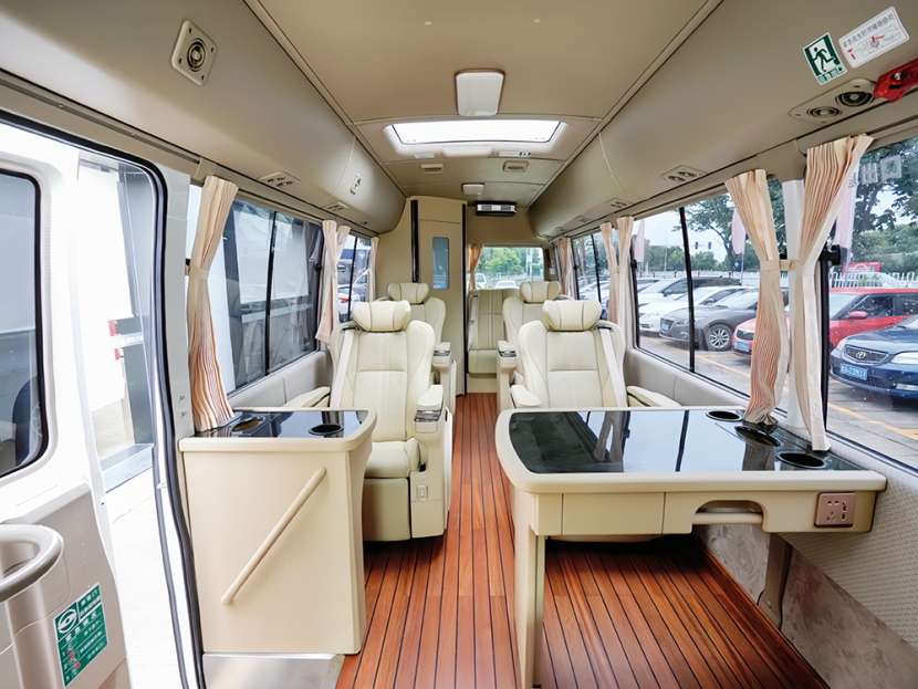 此外车上还装备了多媒体设备,支持团队在旅途中进行视频会议和商务洽谈,为企业提升办公效率和旅途舒适度。