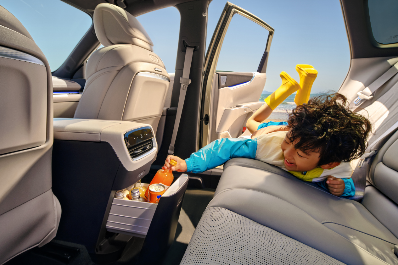 别克至境E7是孩子的“专属餐厅”,配备同级第一的银离子保鲜冷暖箱,内胆融入银离子材质,从源头减少异味、长效抑菌,让妈妈精心准备的饭菜始终保持在适宜的温度。配合二排多功能桌板,无论是孩子用餐、看书画画,还是妈妈补妆,都能轻松满足。