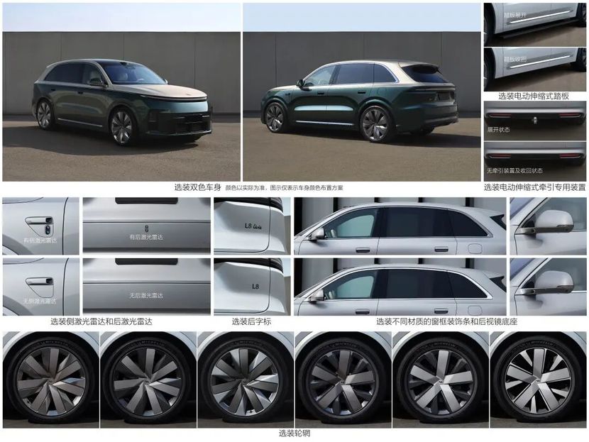 而在外部的硬件上,新一代L8部分车型将提供4激光雷达选项,除去前风挡上方的激光雷达外,在前翼子板、后保险杠上都新增了DOF固态补盲雷达。