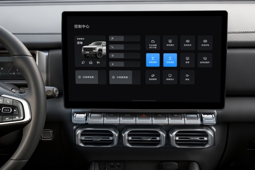 安全与驾驶辅助方面,360°全景影像+透明底盘对于一台车长超过5米、盲区巨大的皮卡而言,是刚需配置。在狭窄的山路会车、复杂的越野路段或拥挤的城市停车场,这套系统能有效避免剐蹭和事故。